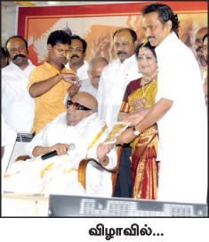 இந்த முப்பெரும் விழாவில் எப்போதும் ஒரு மெசேஜ் இருக்கும். இந்த முறை கிடைத்த மெசேஜ்... கலைஞர் தனது வாரிசுகளின் மூக்குடைத்துவிட்டு, குஷ்புவுக்கு ராஜ மரியாதை செய்திருப்பதுதான். அந்த விஷயத்துக்கு இறுதியில் வருவோம். நாகர்கோவில் தேர்வான ரகசியம்!