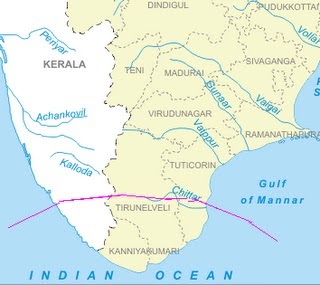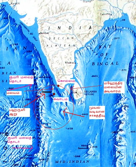 அது கன்னியாகுமரியுடன் முடிந்து விடுகிறது. ஆனால் மஹாபாரதம் மற்றும் ராமாயணம் கொடுக்கும் விவரங்களின்படி, தாமிரபரணி ஆறு தொடங்கி தெற்கில் மலய பர்வதம் இன்னும் செல்கிறது.