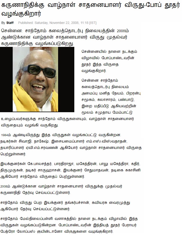 October 18, 2018100 கோடி பட்ஜெட் செலவில் சாந்தோம் சர்ச் தயாரிக்கும் திரைபடம் "புனித தோமையார்" துவக்கவிழா 3 ஜூலை 2008 அன்றைய தமிழக முதல்வர் கருணாநிதி தலைமையில் நடந்தது.
