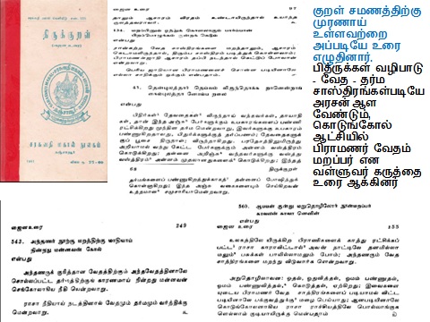 பித்ருக்கள் வழிபாடு - வேத - தர்ம சாஸ்திரங்கள்படியே அரசன் ஆள வேண்டும், அரசர் கொடுங்கோலானால் பிராமணர் வேதம் மறப்பர் என வள்ளுவர் கருத்தை உரை ஆக்கினர்,